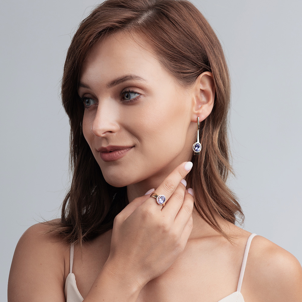 • Вставки1 Танзанит Овал 9*7 2,186; 20 Бр Круг 0,076; 4 Бр Круг 0,026; 3 Бр Круг 0,026