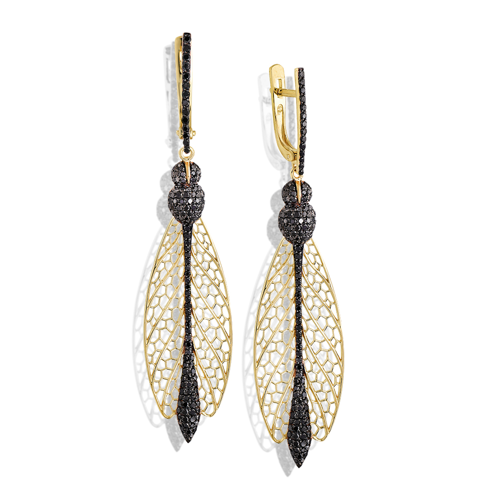 Серьги со вставкой бриллиант черный арт. 2-107-592-48