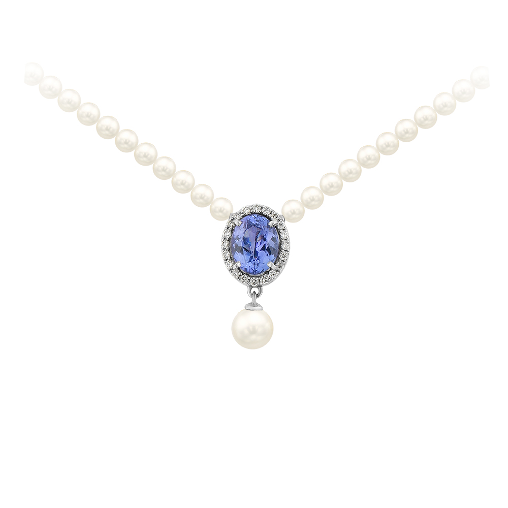 Колье со вставками жемчуг культивированный, танзанит, бриллиант