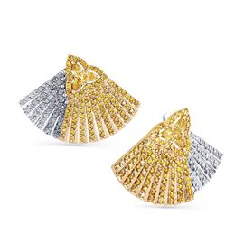 Серьги жёлтое/белое золото 585 пробы со вставками бриллиант лимонный, бриллиант, бриллиант оранжевый арт. 2-107-799-55