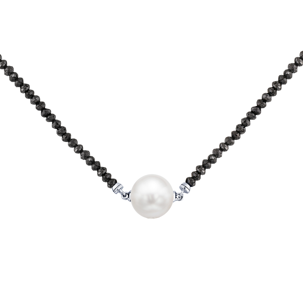 Колье со вставками бриллиант черный, жемчуг культивированный