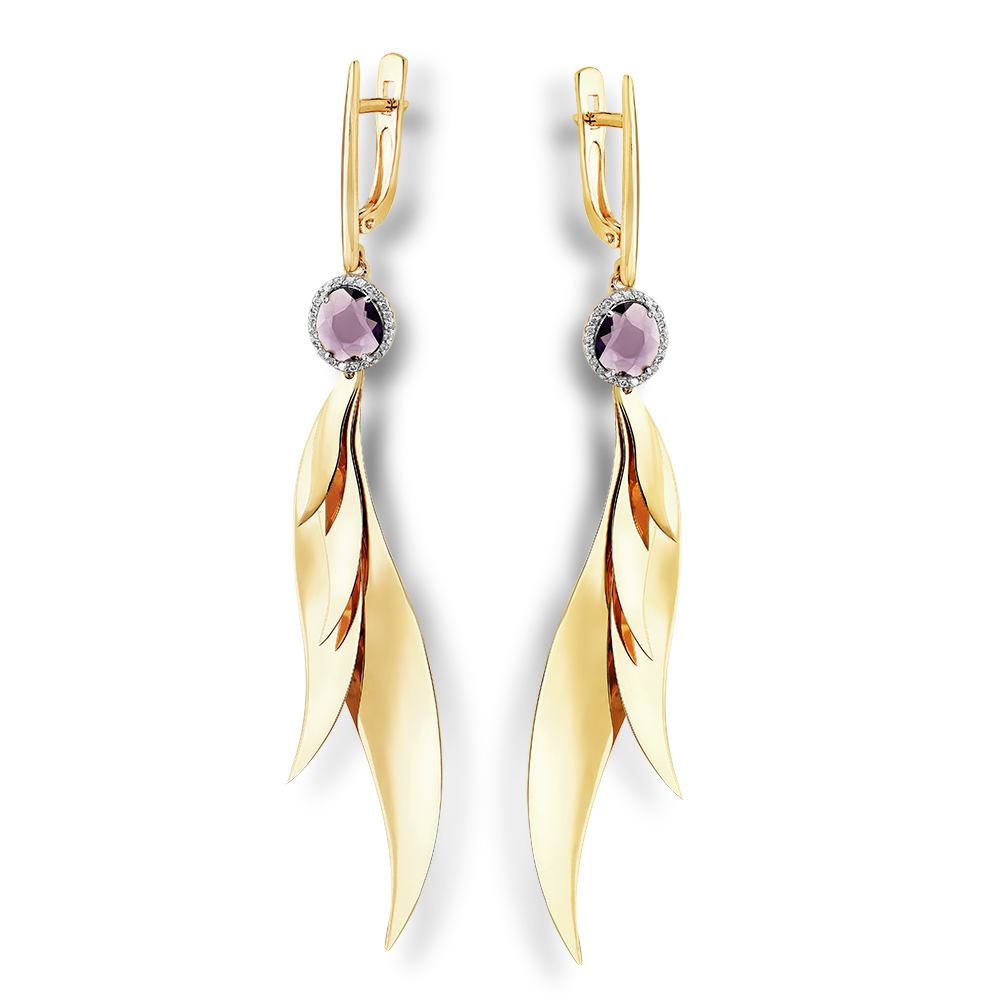 Серьги со вставками бриллиант, шпинель