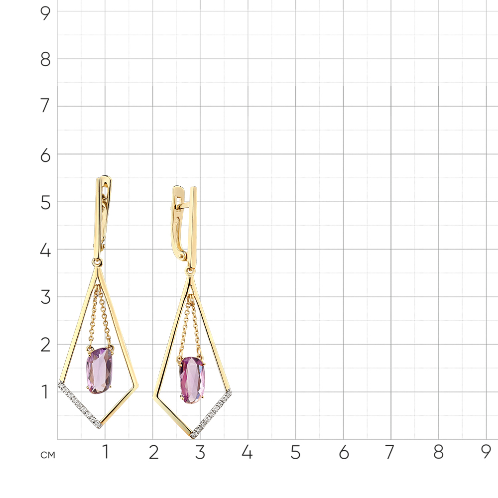 Серьги жёлтое золото 585 пробы со вставками сапфир облагороженный фиолетовый, бриллиант