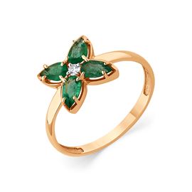 Серьги красное золото 585 пробы со вставками изумруд н., бриллиант арт. 2-102125-00-01