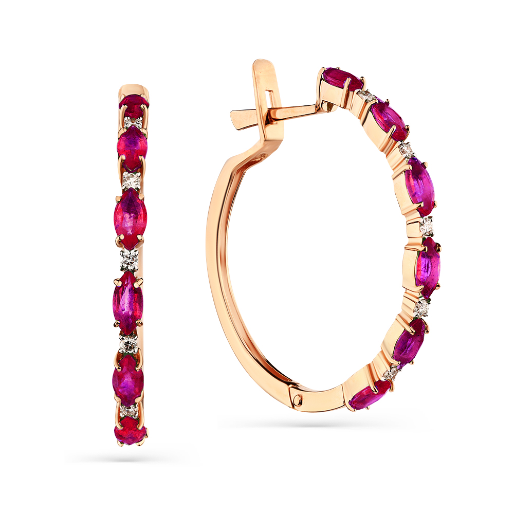 Серьги красное золото 585 пробы со вставками рубин н., бриллиант арт. 2-108401-00-03