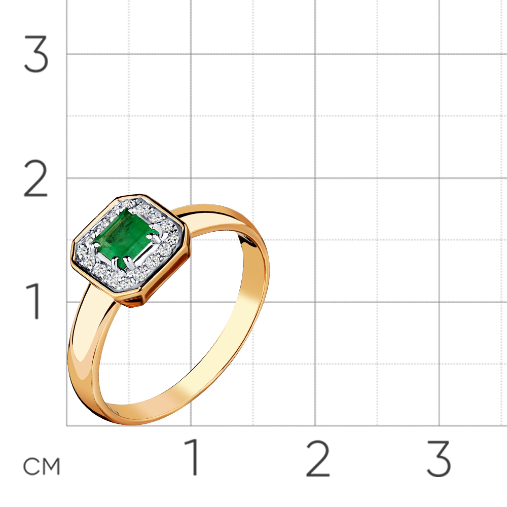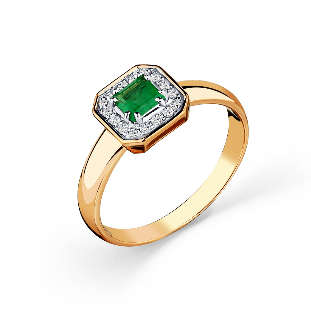 Кольцо красное золото 585 пробы со вставками изумруд н., бриллиант арт. 1-108751-00-01
