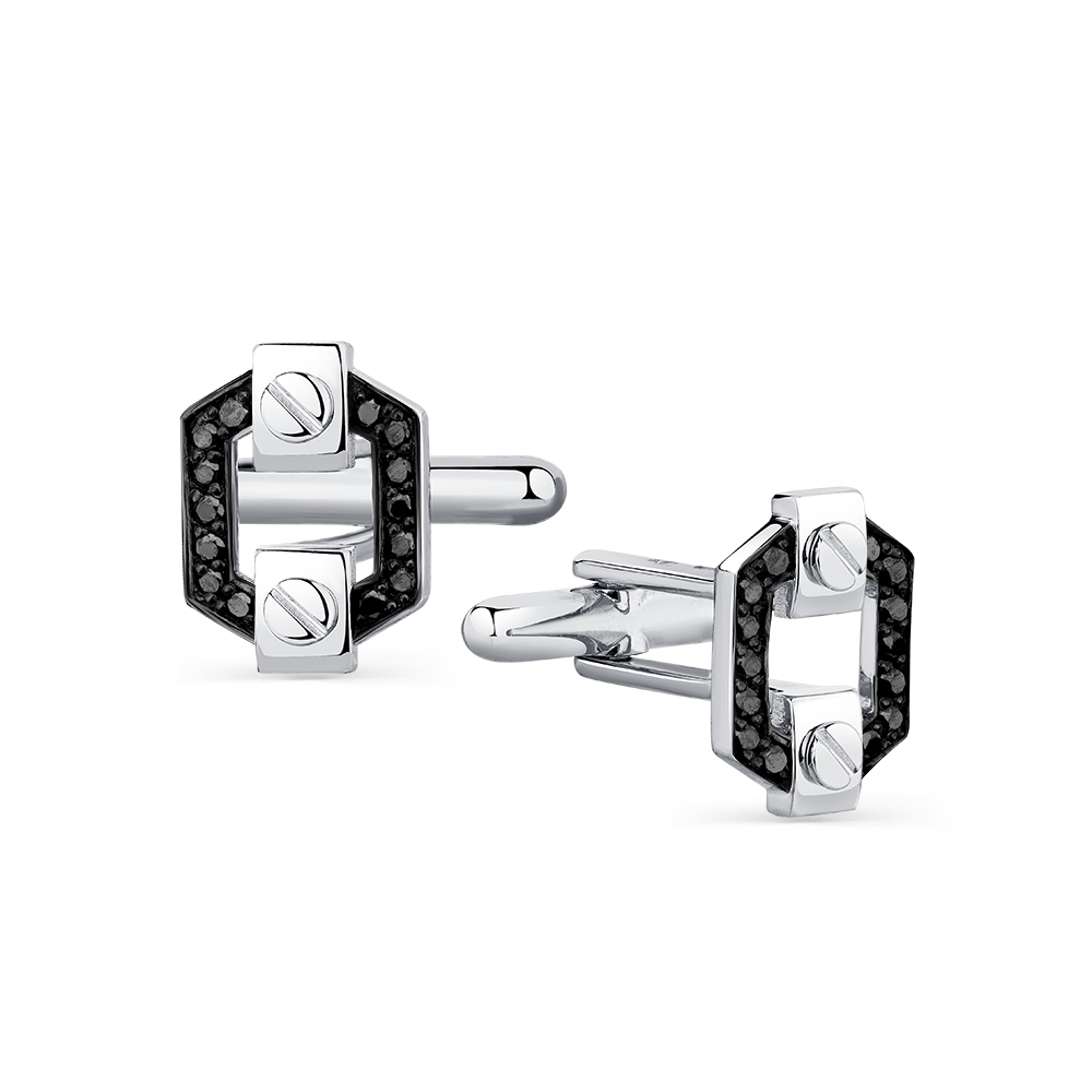 Запонки белое золото 585 пробы со вставкой бриллиант черный