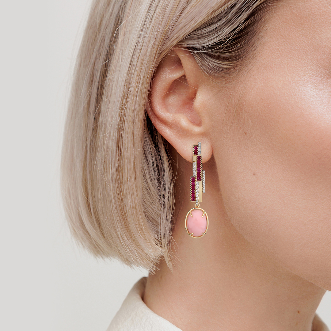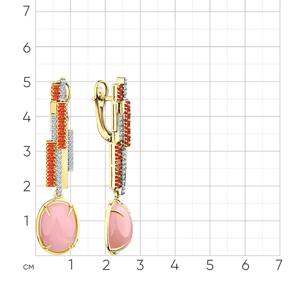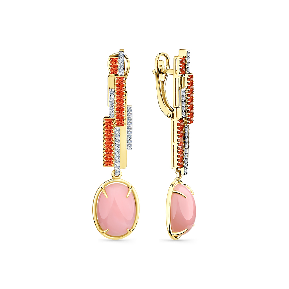 Серьги жёлтое золото 585 пробы со вставками опал, сапфир облагороженный, бриллиант