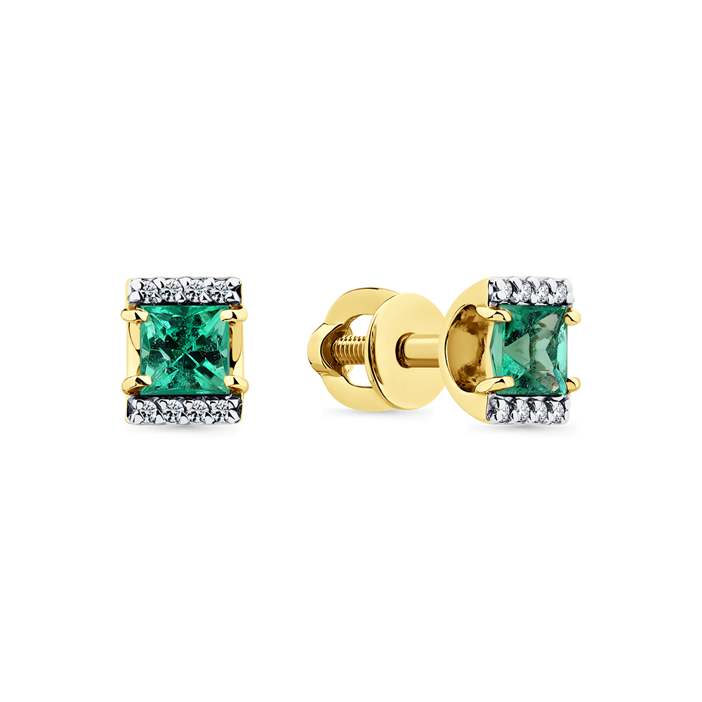 Серьги жёлтое золото 585 пробы со вставками изумруд н., бриллиант арт. 2-302148-00-01