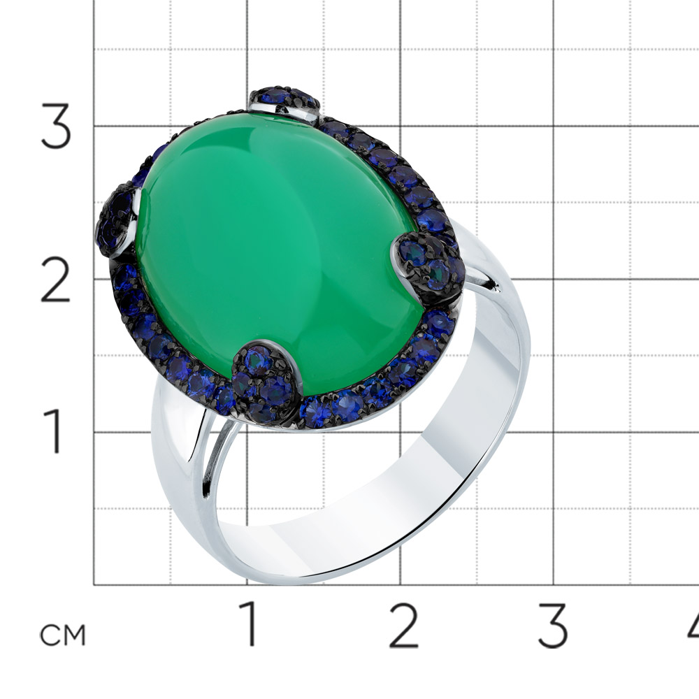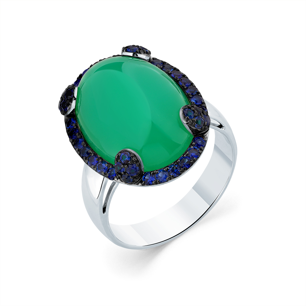 Кольцо белое золото 585 пробы со вставками хризопраз, сапфир облагороженный синий арт. 1-209010-00-55