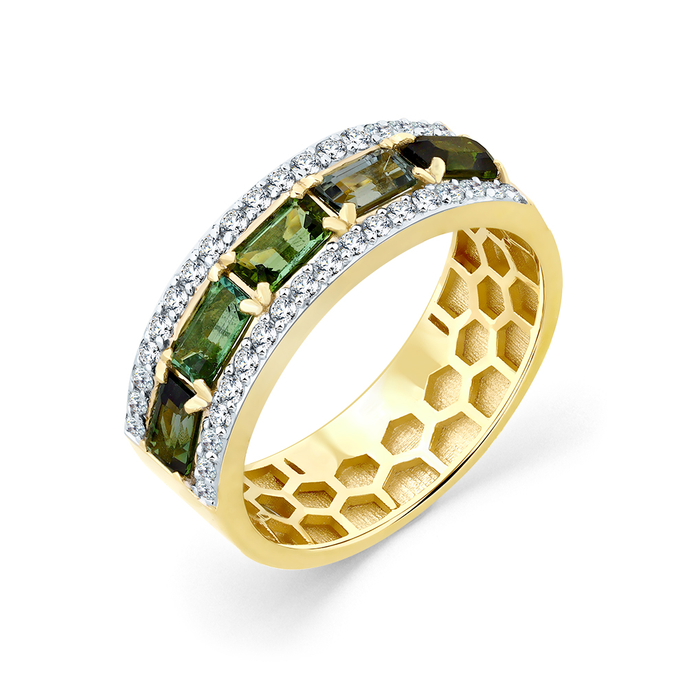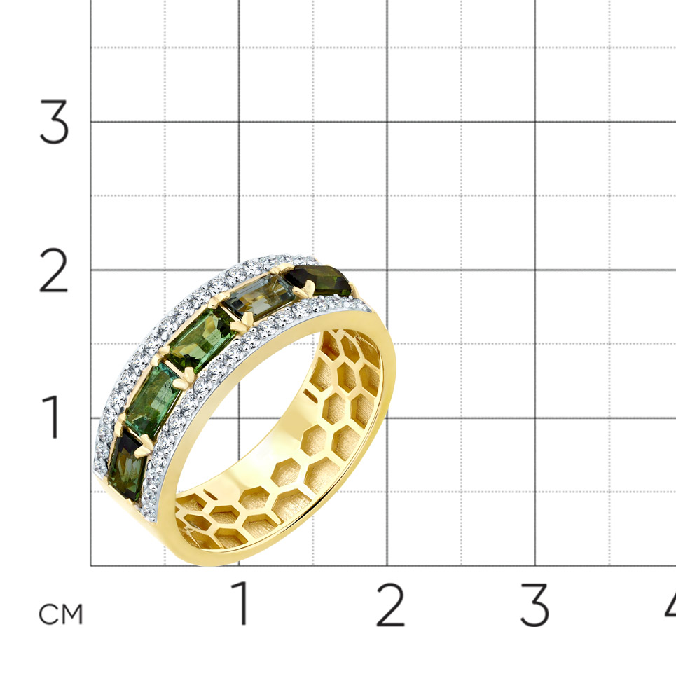 Кольцо жёлтое золото 585 пробы со вставками турмалин мультиколор, бриллиант арт. 1-309077-00-60