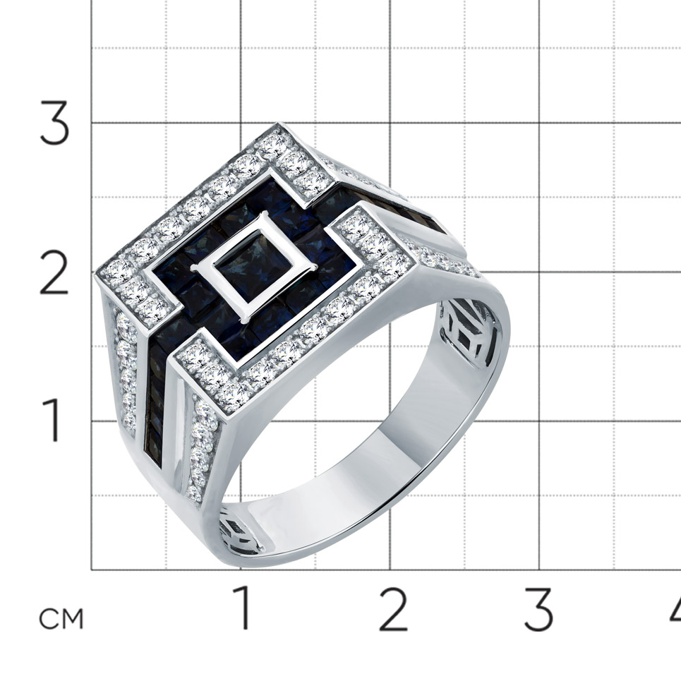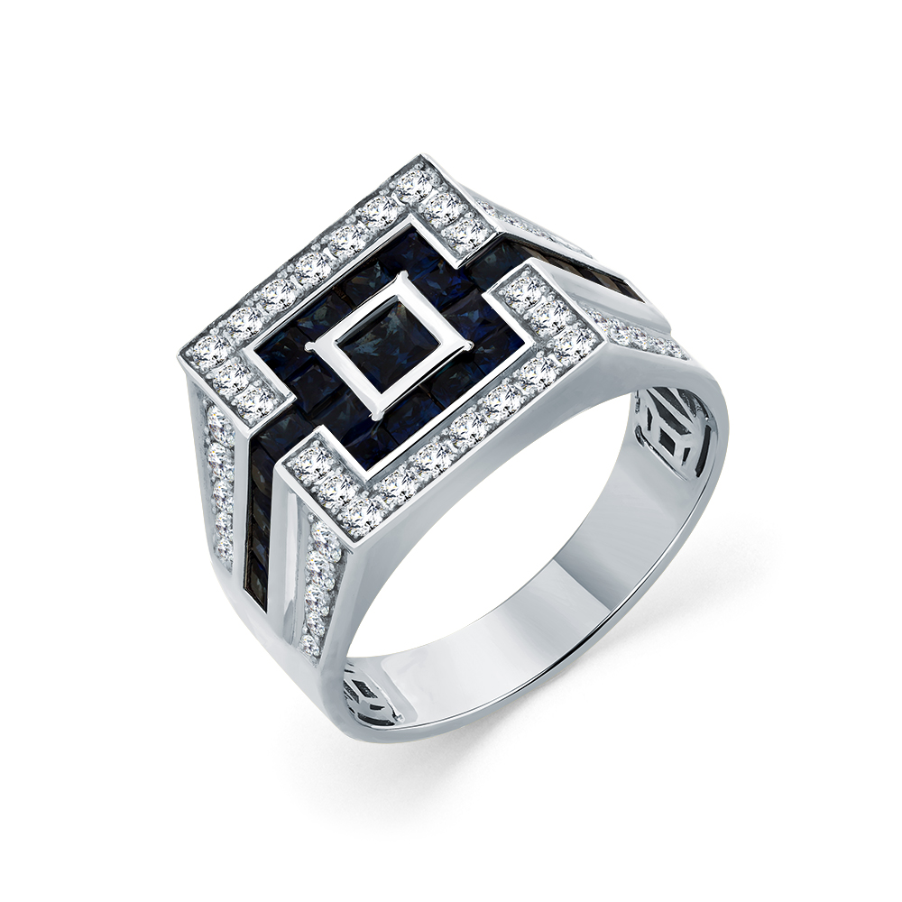 Кольцо белое золото 585 пробы со вставками сапфир н., бриллиант арт. 1-204049-01-02
