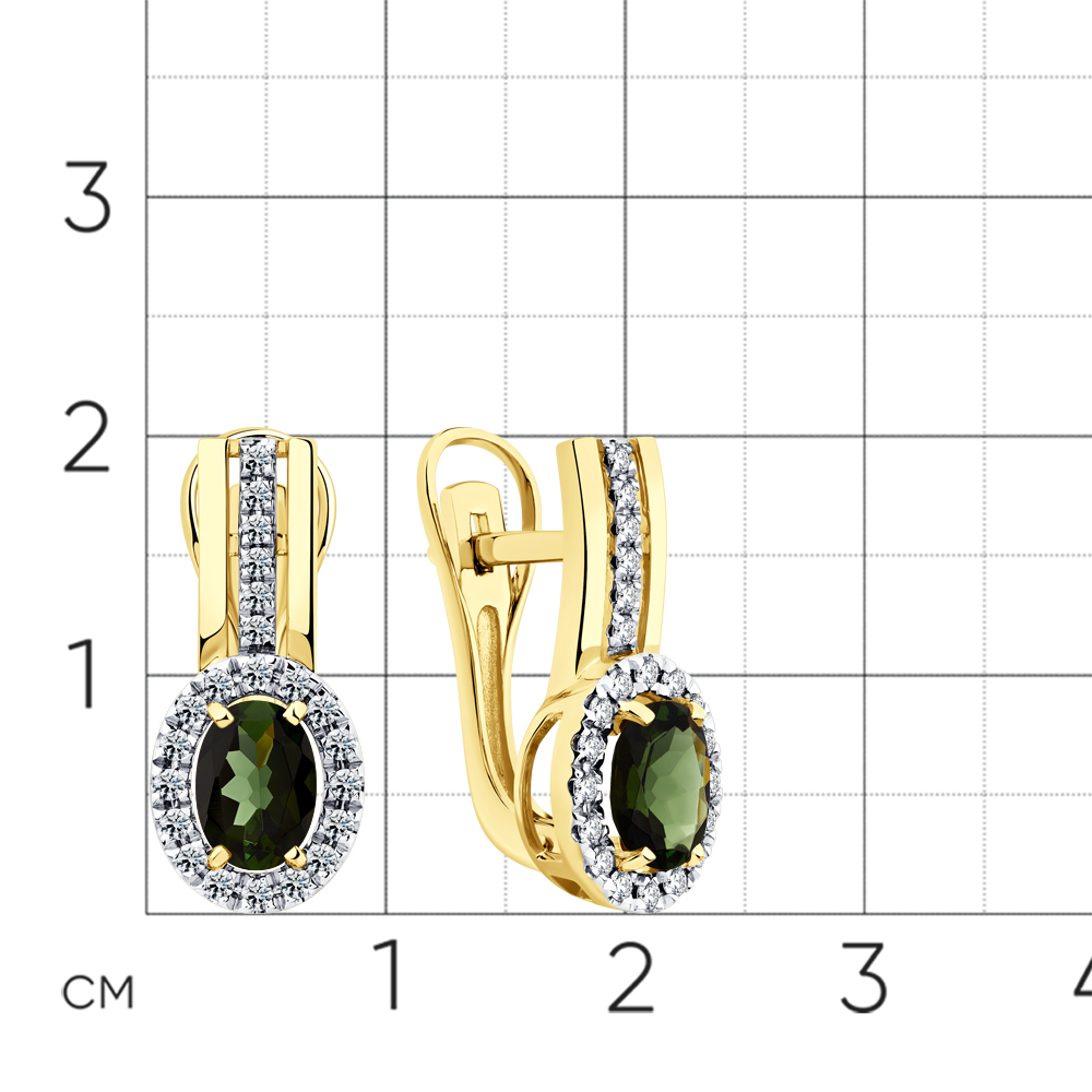 Серьги жёлтое золото 585 пробы со вставками турмалин, бриллиант
