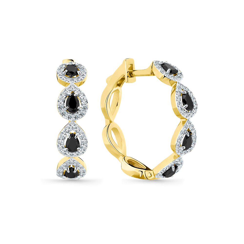 Серьги жёлтое золото 585 пробы со вставками бриллиант черный, бриллиант арт. 2-309134-01-55