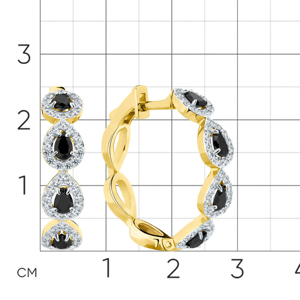 Серьги жёлтое золото 585 пробы со вставками бриллиант черный, бриллиант