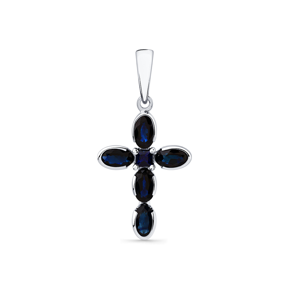 Крест белое золото 585 пробы со вставкой сапфир н. арт. 8-280287-00-02