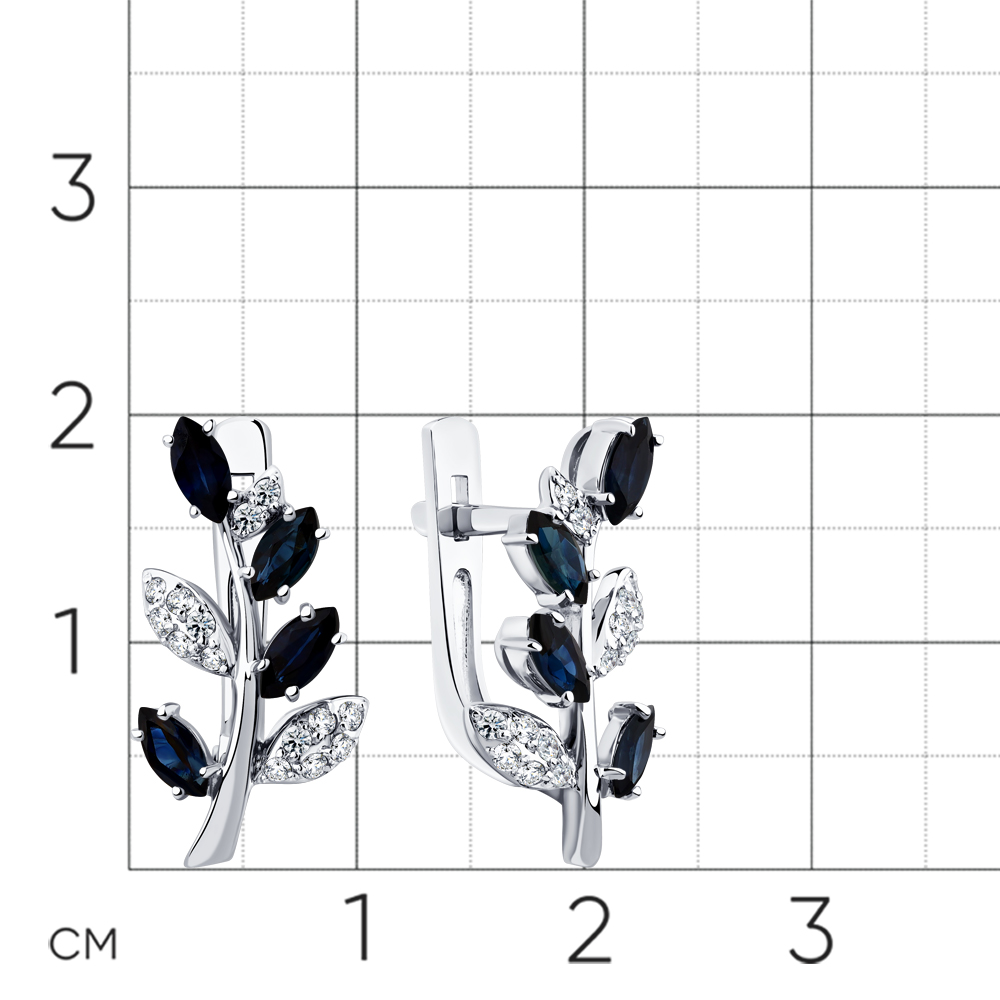 Серьги белое золото 585 пробы со вставками сапфир н., бриллиант арт. 2-209216-00-02