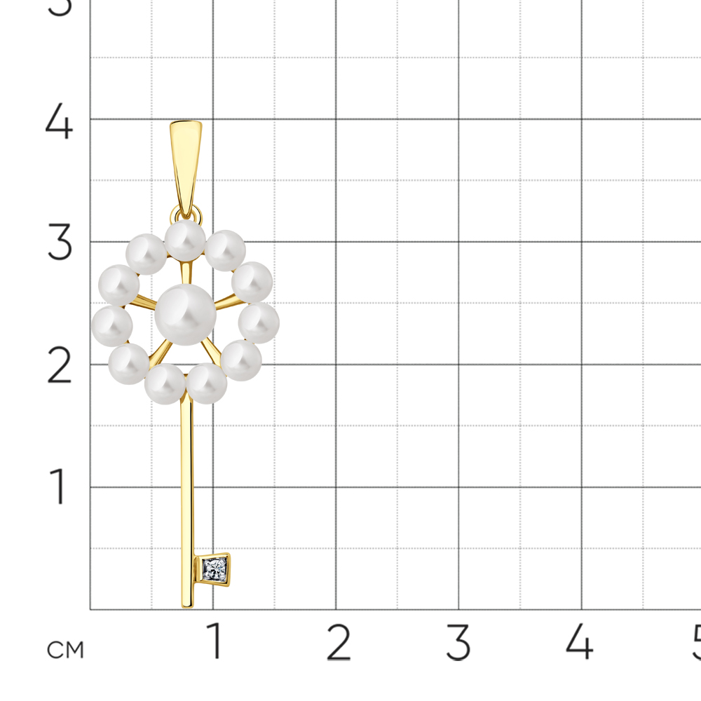 Подвеска жёлтое золото 585 пробы со вставками жемчуг, бриллиант арт. 3-330097-00-28