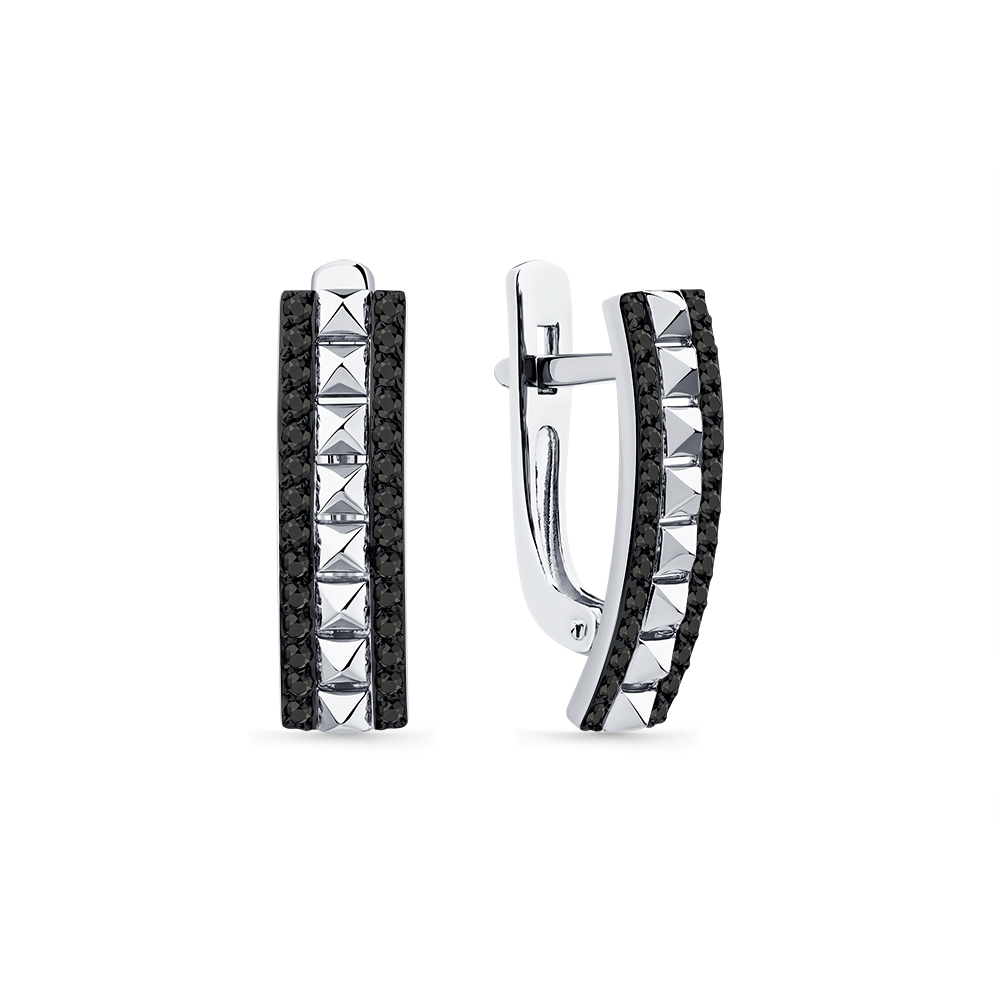 Серьги белое золото 585 пробы со вставкой бриллиант черный арт. 2-209186-00-48
