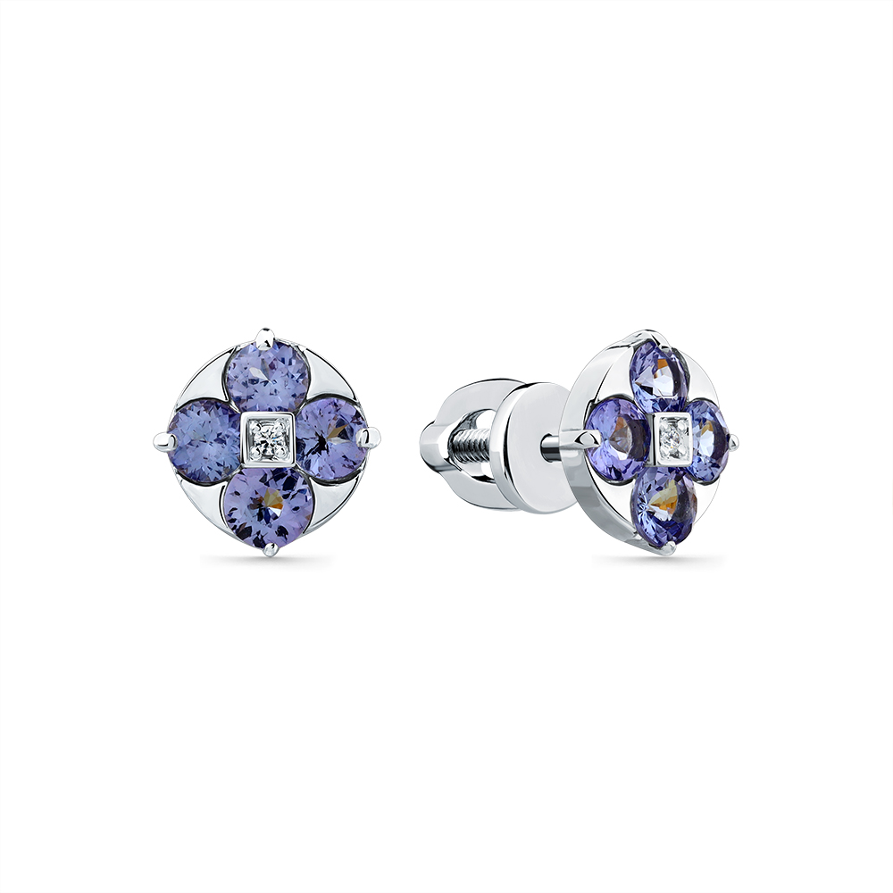 Серьги белое золото 585 пробы со вставками танзанит, бриллиант арт. 2-204269-00-31