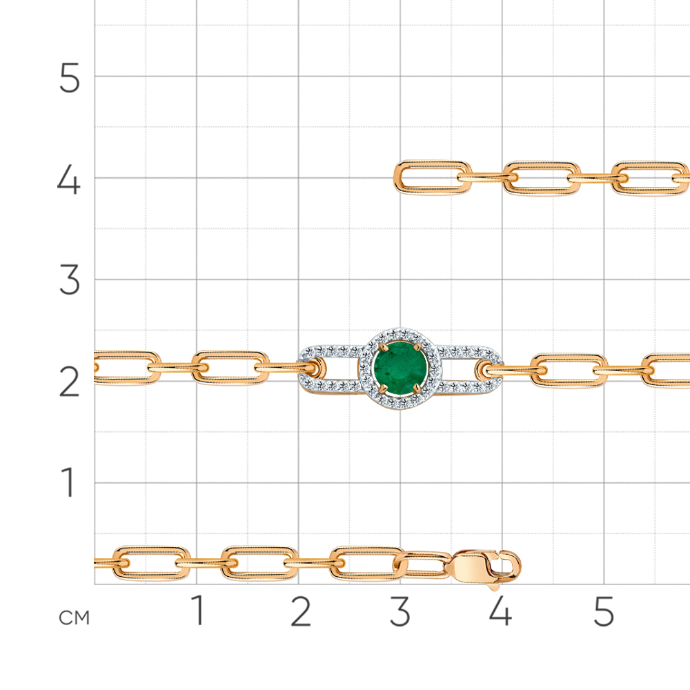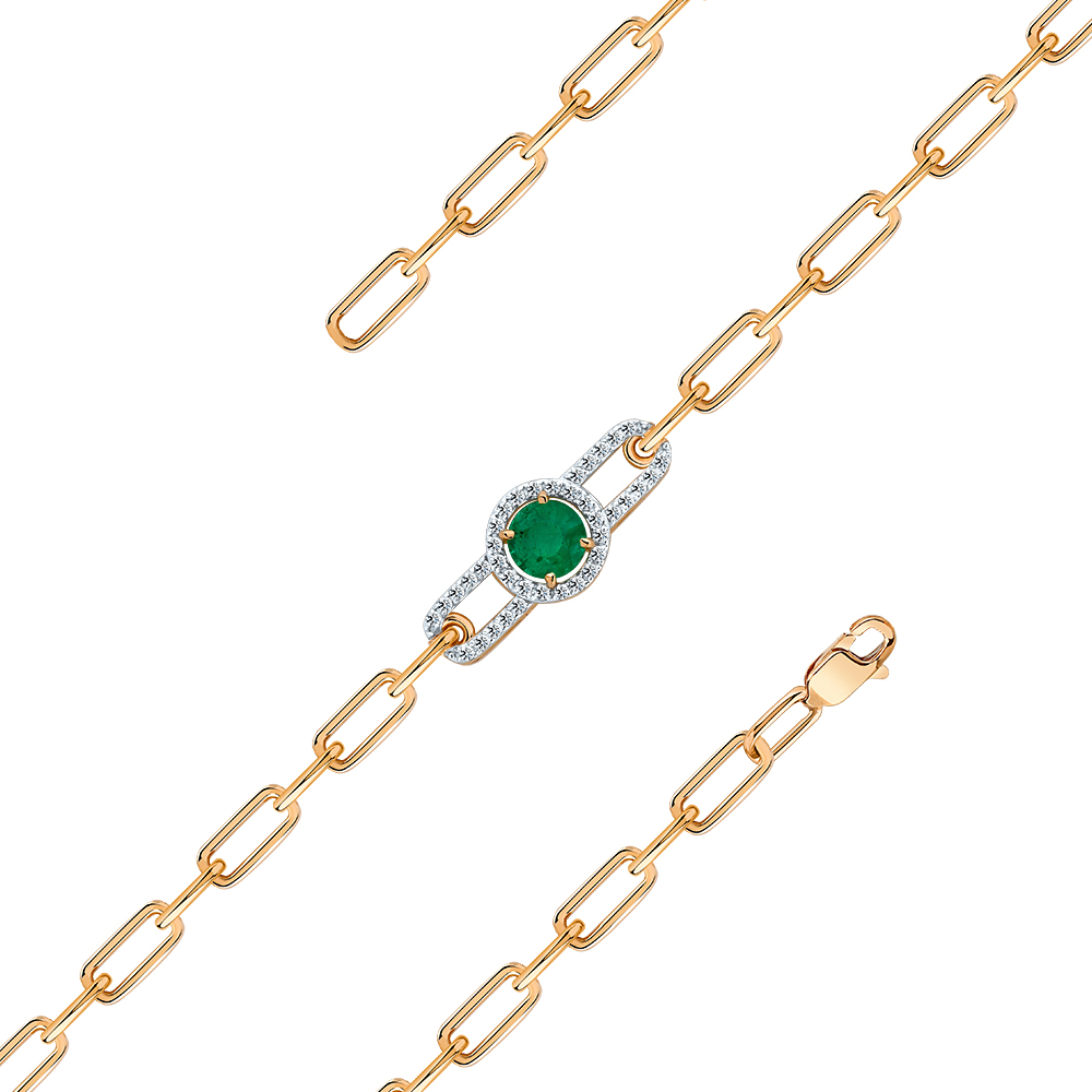 Браслет красное золото 585 пробы со вставками изумруд н., бриллиант арт. 10-120533-70-01