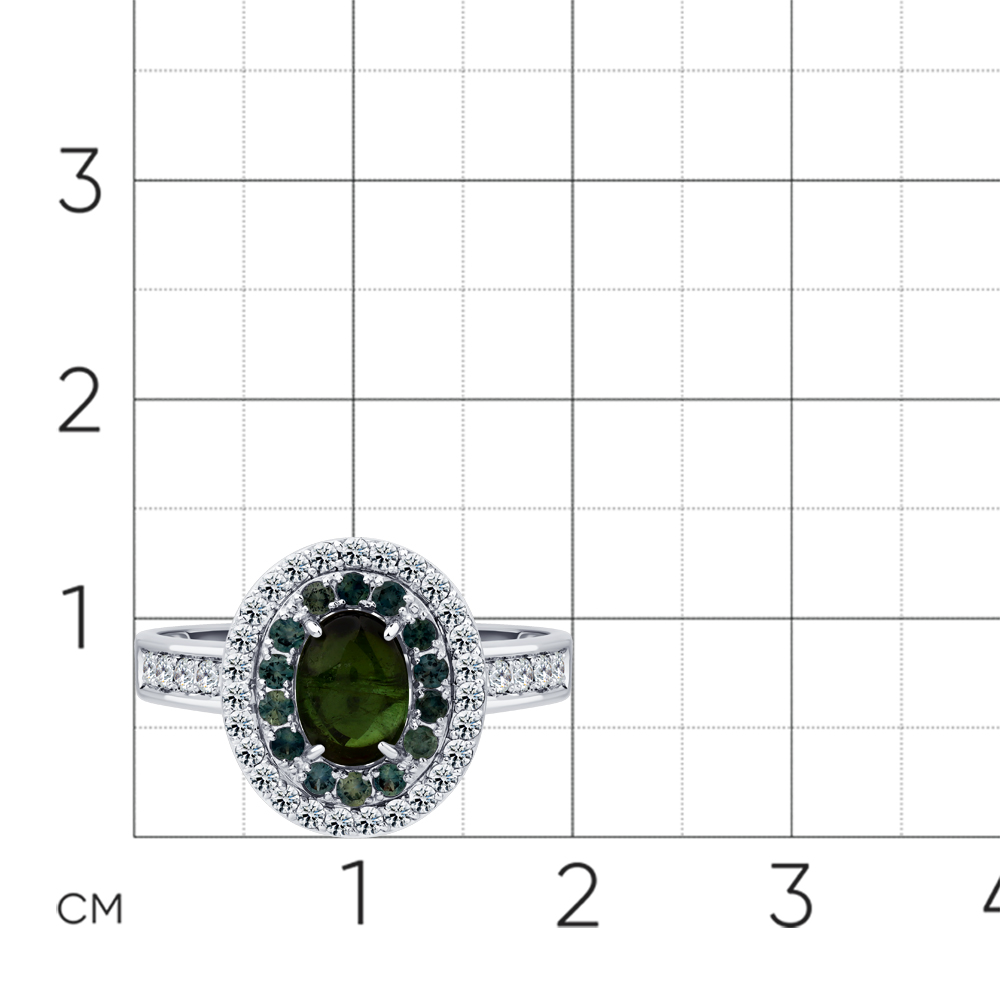 Кольцо белое золото 585 пробы со вставками турмалин, сапфир облагороженный, бриллиант арт. 1-209244-00-55