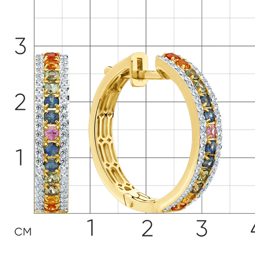 Серьги жёлтое золото 585 пробы со вставками сапфир облагороженный, бриллиант
