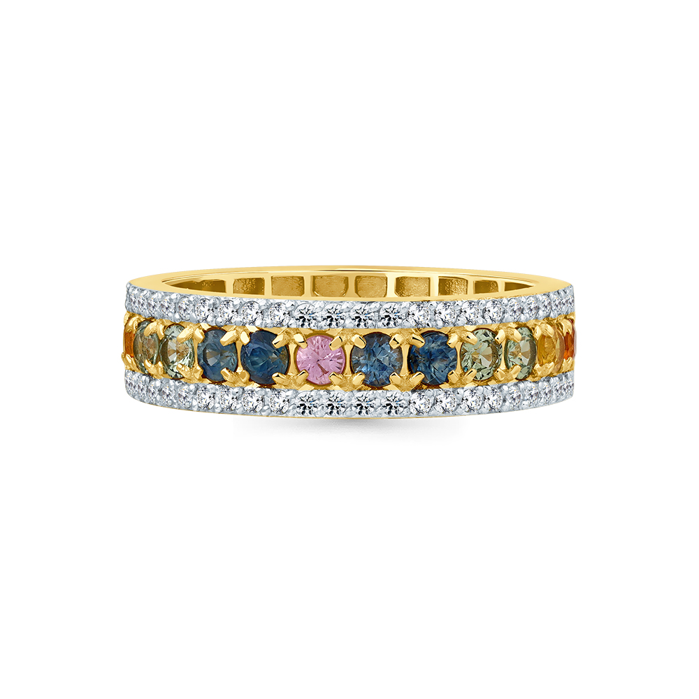 Кольцо жёлтое золото 585 пробы со вставками сапфир облагороженный, бриллиант арт. 1-308971-01-47