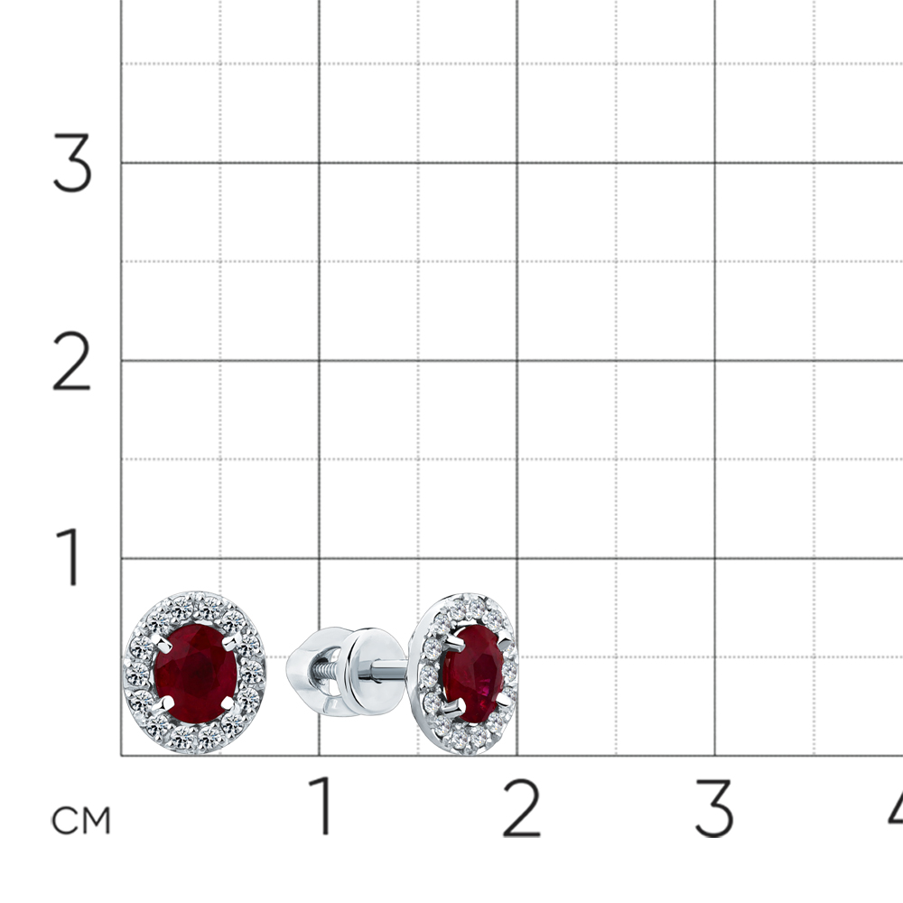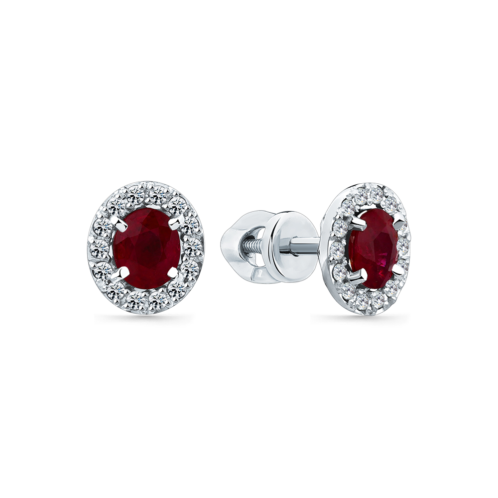 Серьги белое золото 585 пробы со вставками рубин облагороженный, бриллиант