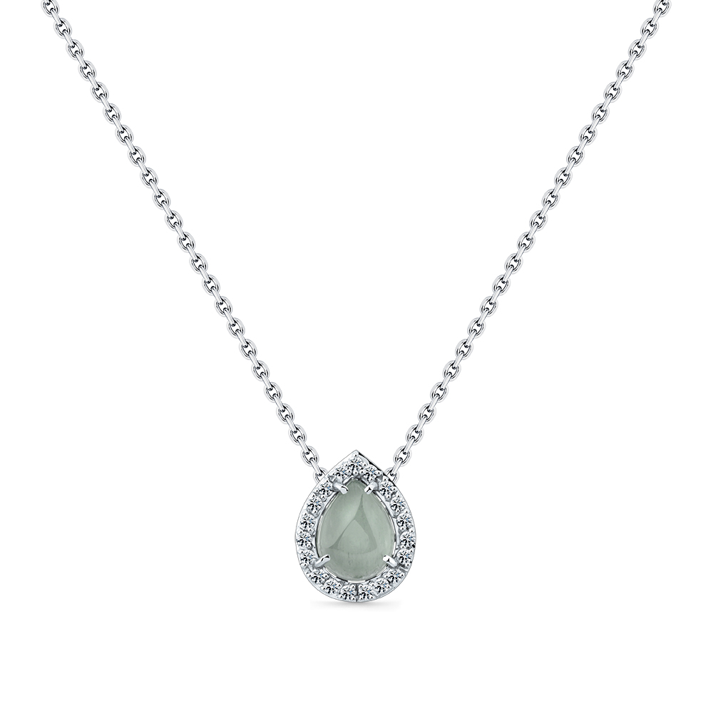Колье белое золото 585 пробы со вставками аквамарин, бриллиант