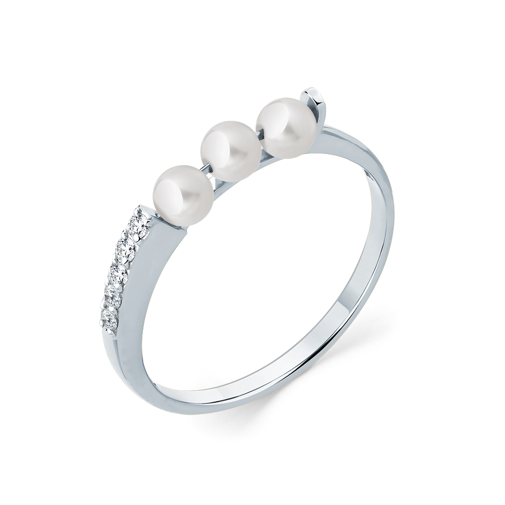 Кольцо белое золото 585 пробы со вставками жемчуг культивированный, бриллиант