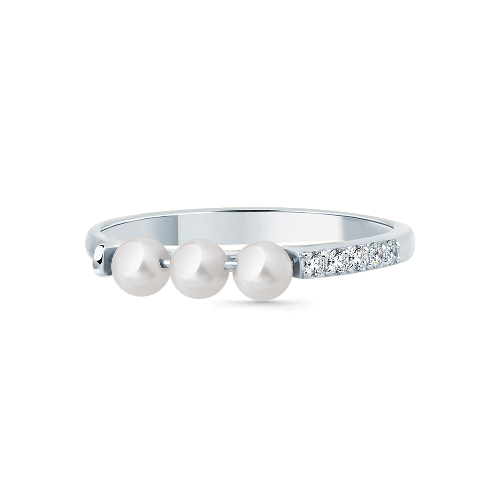 Кольцо белое золото 585 пробы со вставками жемчуг культивированный, бриллиант арт. 1-209330-00-28