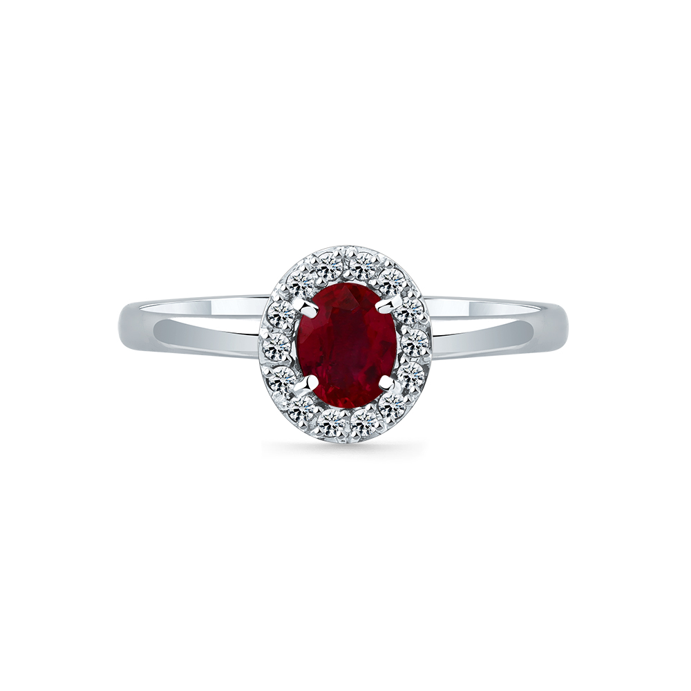 Кольцо белое золото 585 пробы со вставками рубин облагороженный, бриллиант