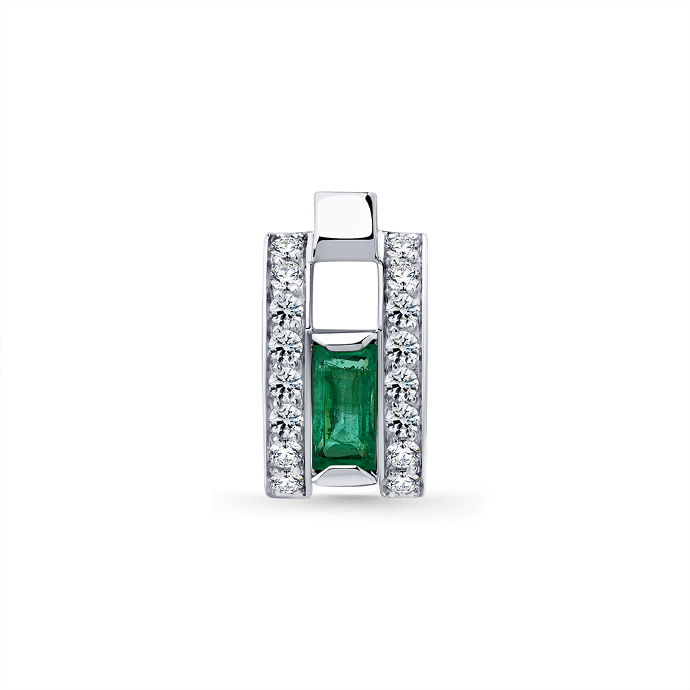 Подвеска белое золото 585 пробы со вставками изумруд н., бриллиант арт. 3-230098-97-01