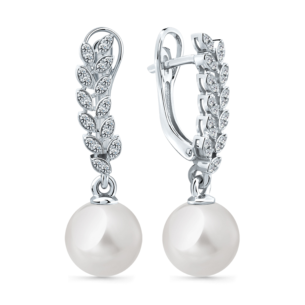 Серьги со вставками жемчуг культивированный, бриллиант арт. 2-209334-00-28
