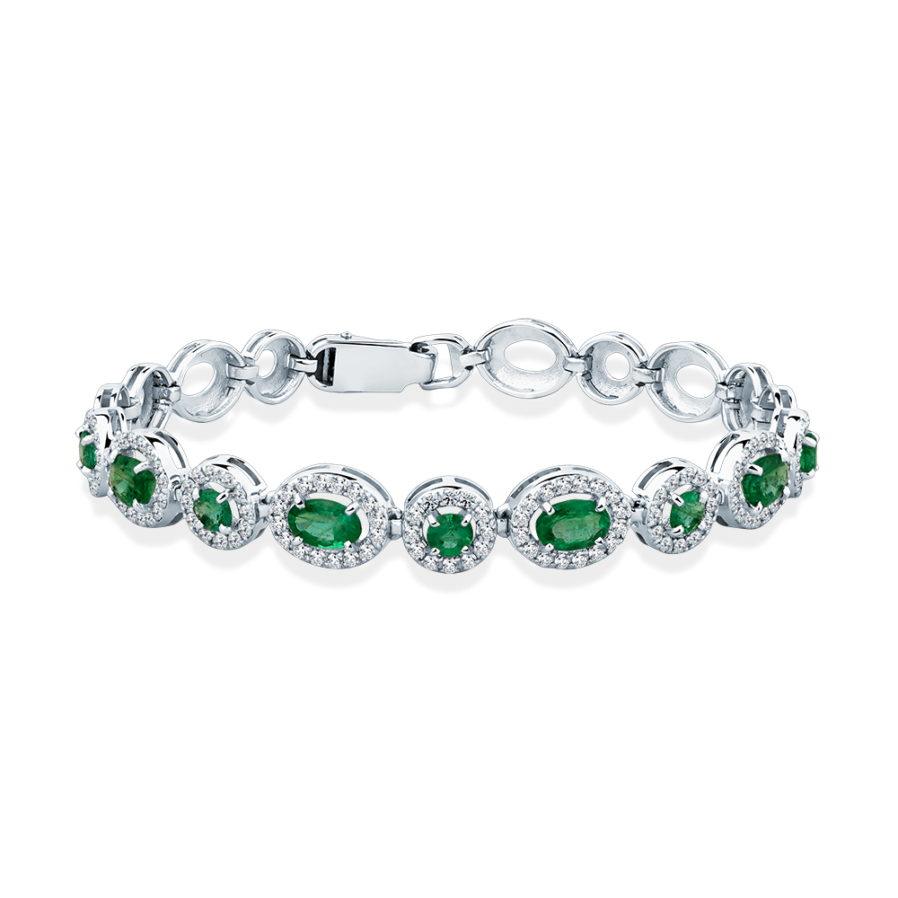 Браслет белое золото 585 пробы со вставками изумруд н., бриллиант