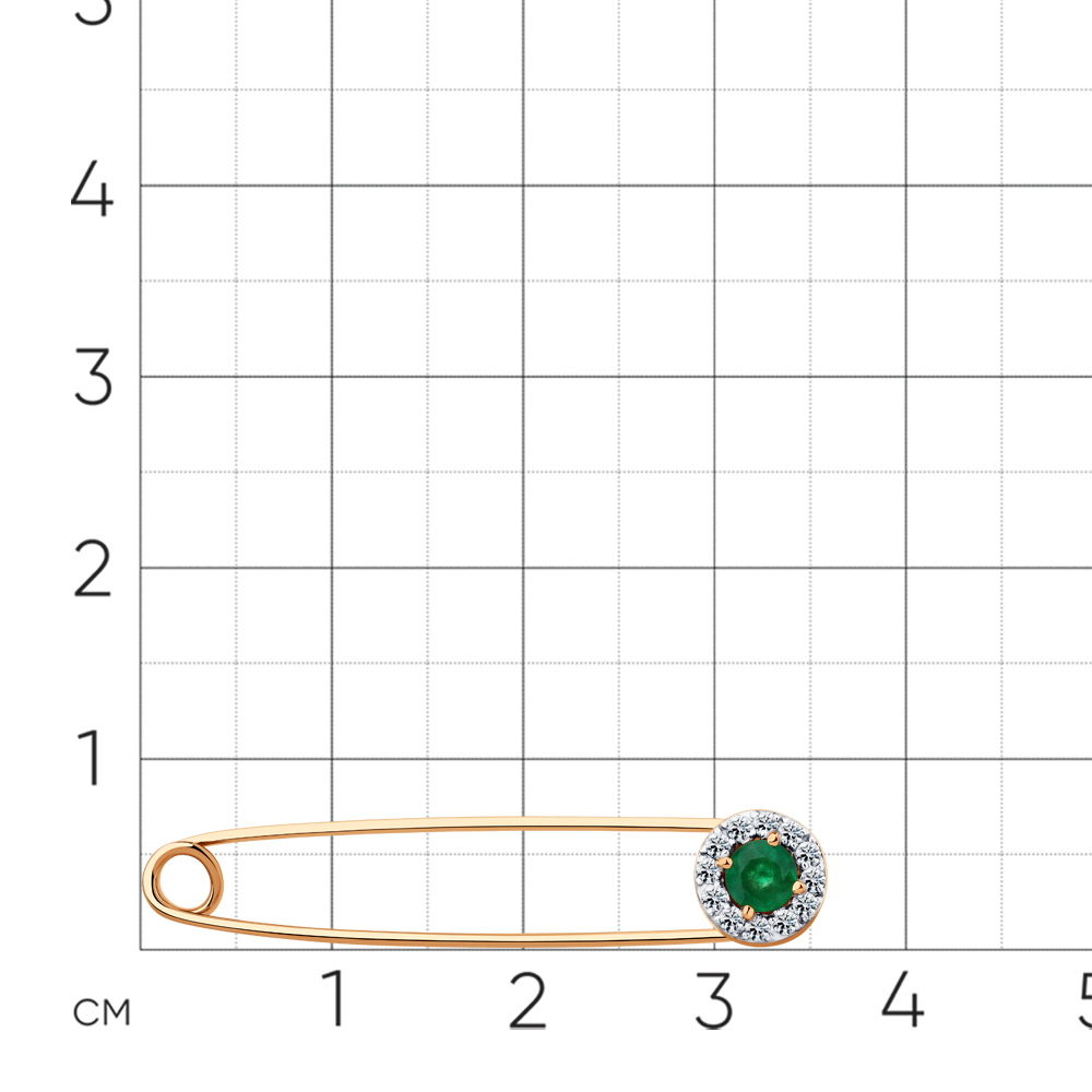 Брошь красное золото 585 пробы со вставками изумруд н., бриллиант арт. 7-170411-00-01