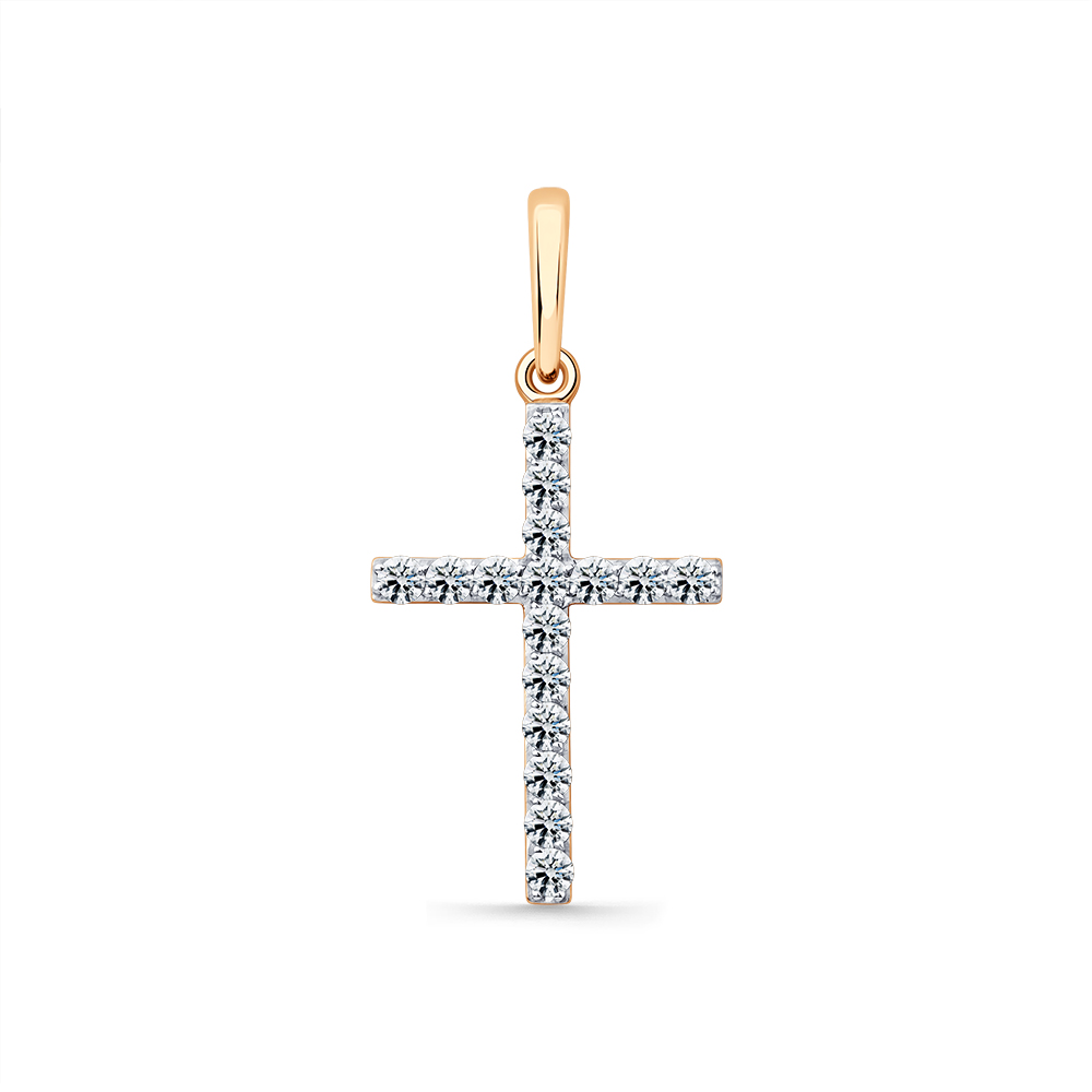 Крест красное золото 585 пробы со вставкой бриллиант арт. 8-180345-00-00