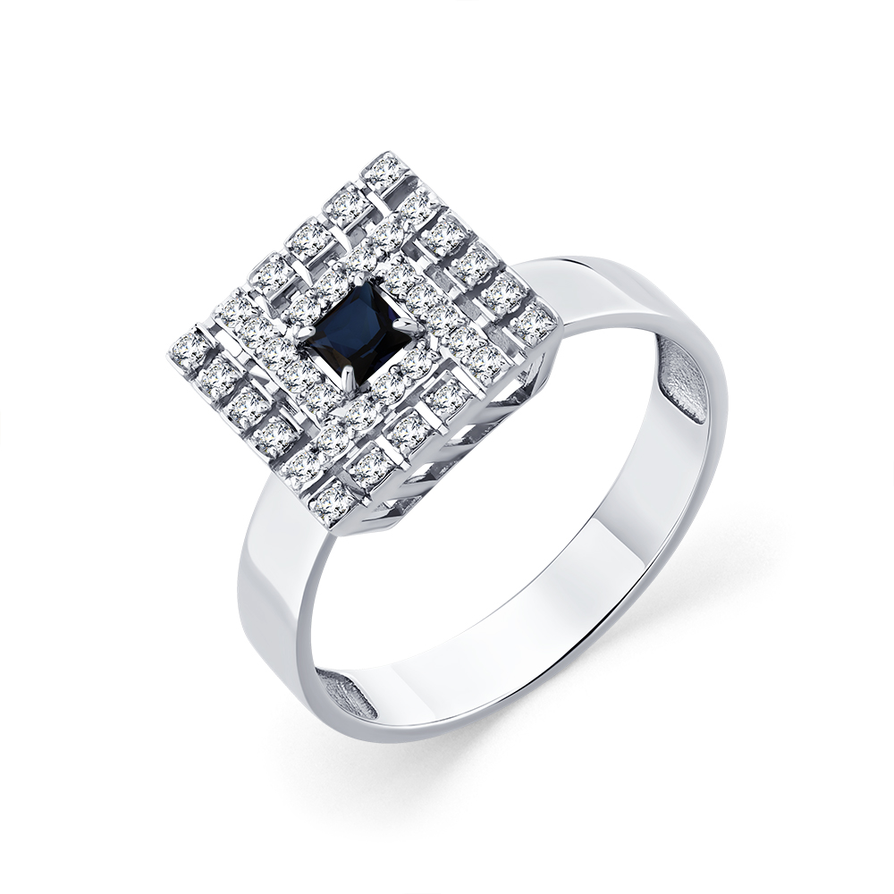 Кольцо белое золото 585 пробы со вставками бриллиант, сапфир н. арт. 1-209341-00-02