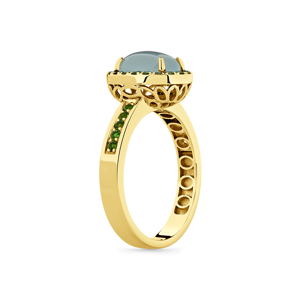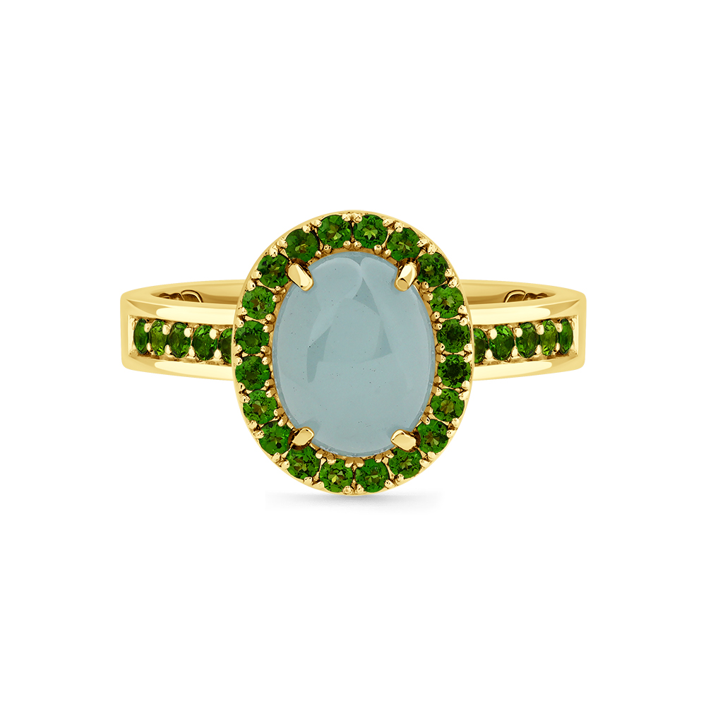 Кольцо жёлтое золото 585 пробы со вставками аквамарин, хромдиопсид арт. 1-309114-00-56