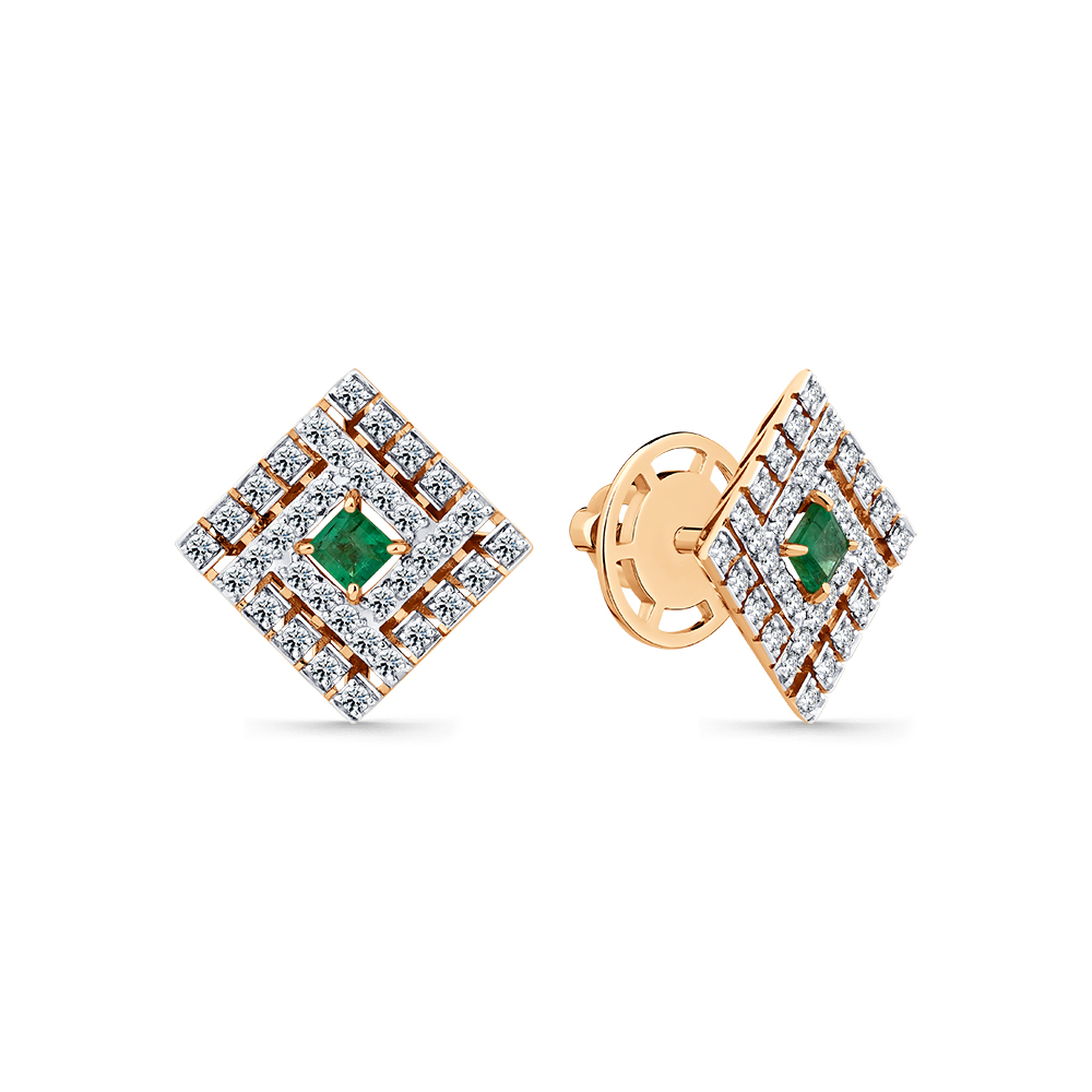 Серьги красное золото 585 пробы со вставками бриллиант, изумруд н. арт. 2-102306-00-01