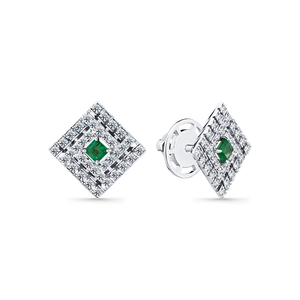 Серьги белое золото 585 пробы со вставками бриллиант, изумруд н. арт. 2-202306-00-01