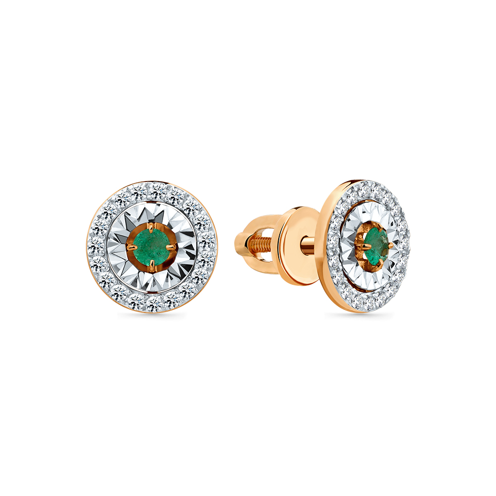 Серьги красное/белое золото 585 пробы со вставками бриллиант, изумруд н. арт. 2-402305-00-01