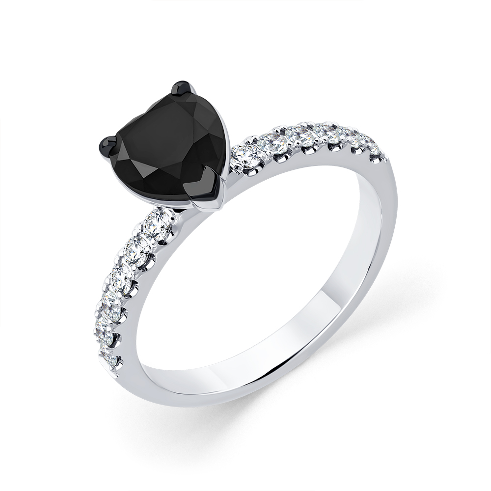Кольцо белое золото 585 пробы со вставками бриллиант черный, бриллиант арт. 1-209132-01-55