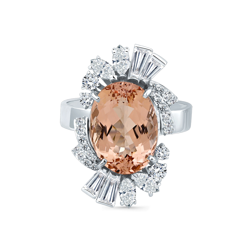 Кольцо белое золото 585 пробы со вставками морганит, бриллиант