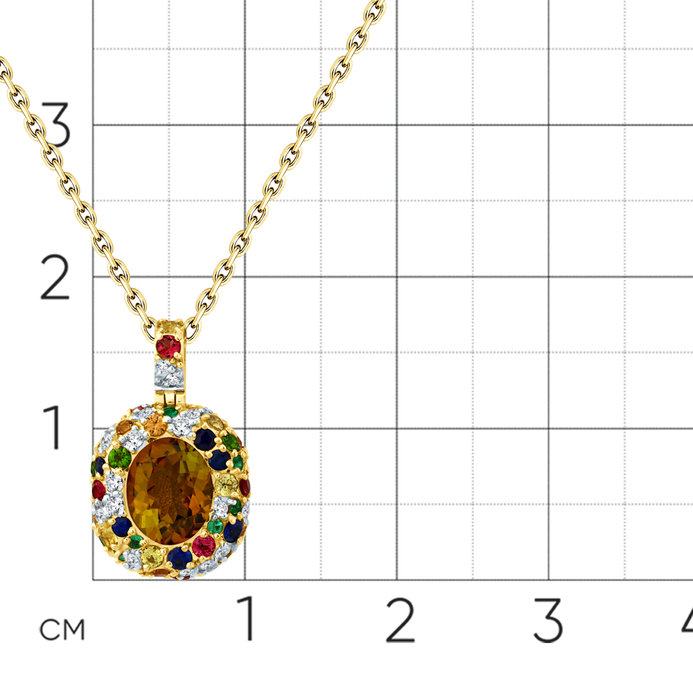 Колье жёлтое золото 585 пробы со вставками турмалин, сапфир облагороженный желтый, сапфир облагороженный оранжевый, бриллиант, шпинель красный, хромдиопсид, сапфир н., сапфир облагороженный синий, изумруд н. |