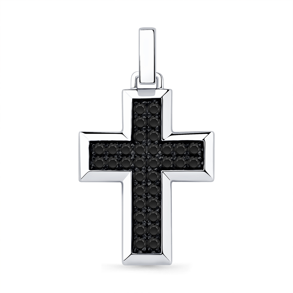 Крест белое золото 585 пробы со вставкой бриллиант черный арт. 8-280347-00-48