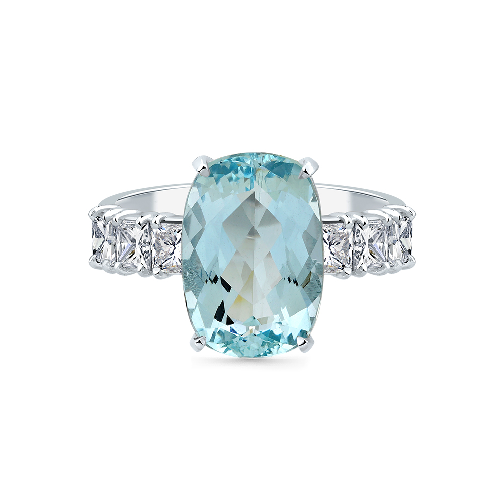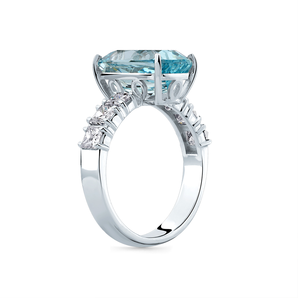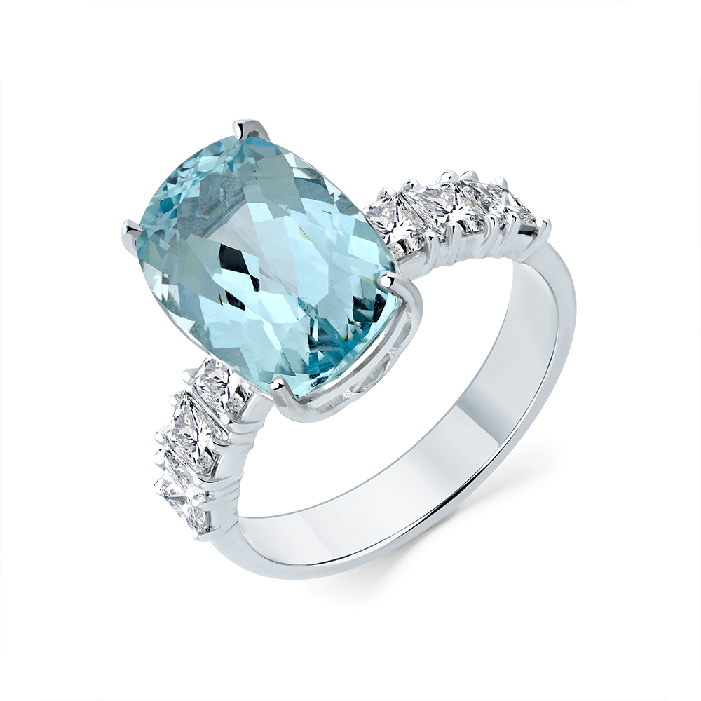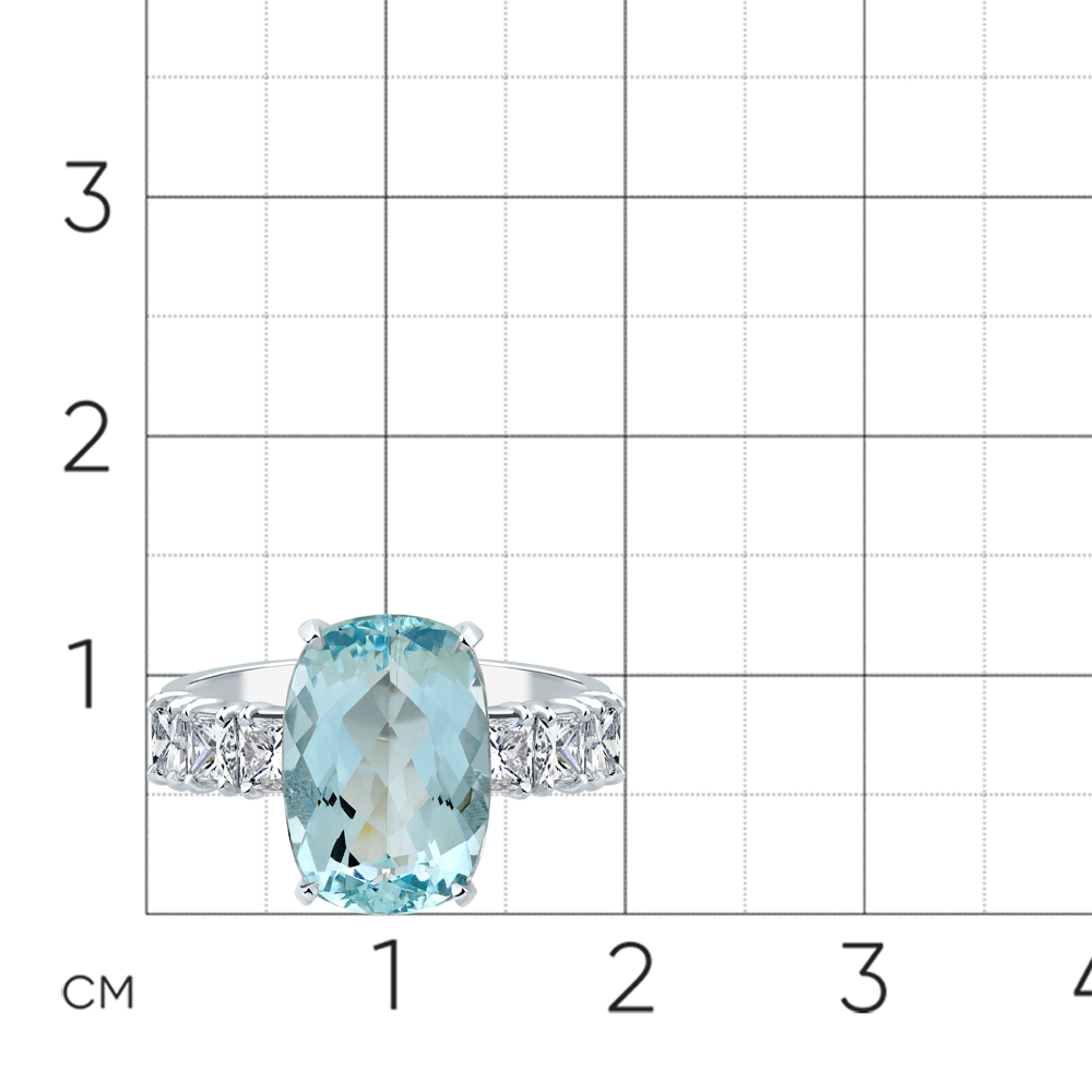 Кольцо белое золото 585 пробы со вставками аквамарин, бриллиант