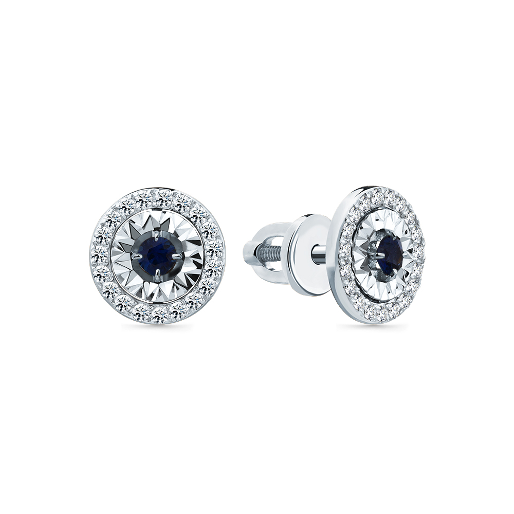 Серьги белое золото 585 пробы со вставками бриллиант, сапфир н. арт. 2-202305-00-02