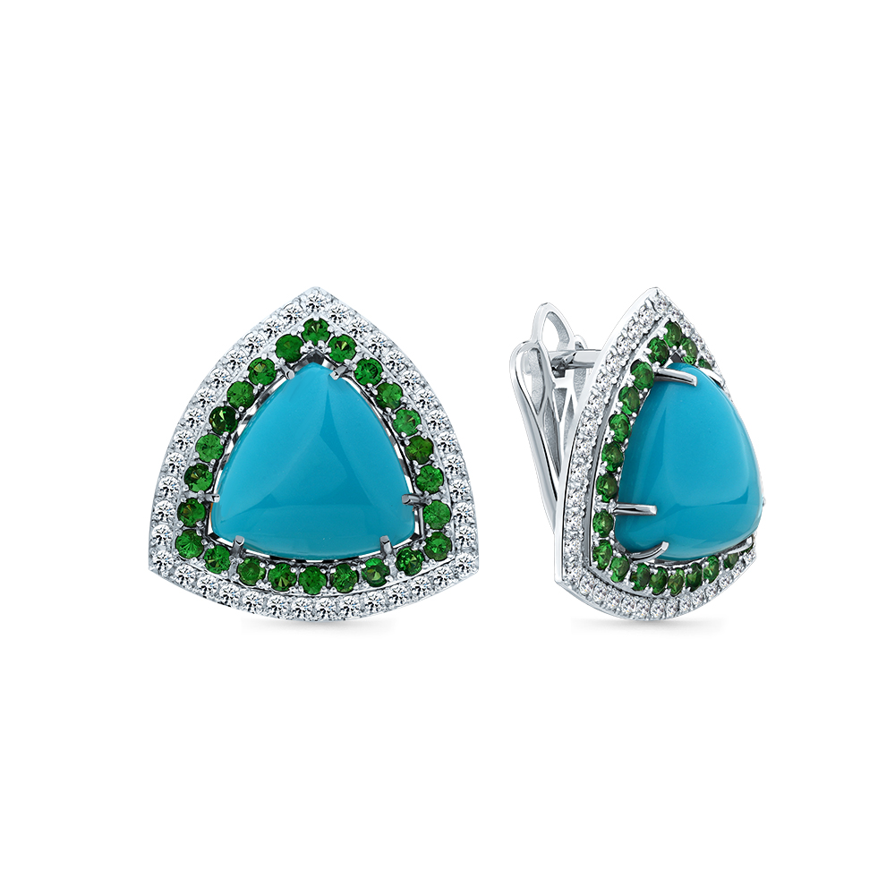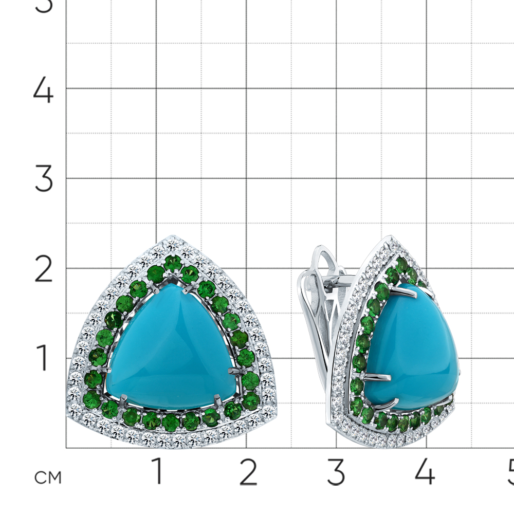 Серьги белое золото 585 пробы со вставками бирюза, цаворит, бриллиант арт. 2-209354-00-55